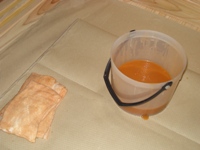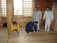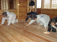 関係者による柿渋塗料での床塗装を実施